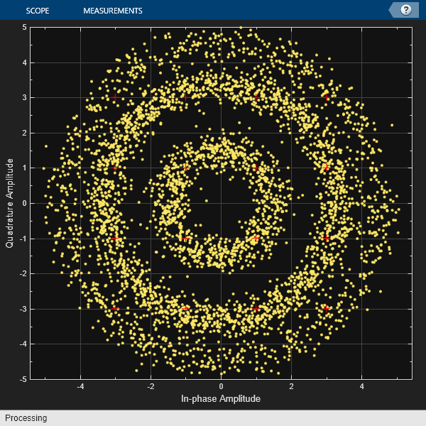 The constellation of a 16QAM system rotates due to the CFO (from Matlab Documentation)