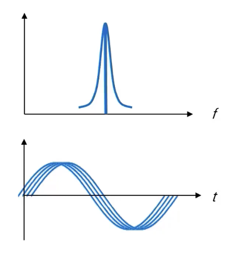 - Frequency domain: Spreading of the carrier around the center frequency.